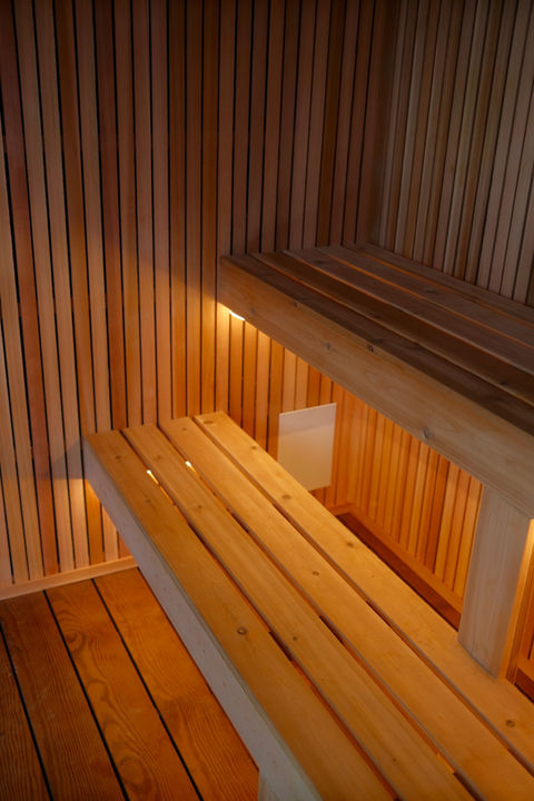 The 212° Sauna gives you and your guests plenty of room to relax and fully enjoy the benefits of heat therapy. In this 6-person sauna, you can sit on the stadium-style bench, stretch out on the upper benches, or recline for a completely immersive experience. Ideal for large-group gatherings, the 212° Sauna combines spacious comfort with premium materials and luxurious design.